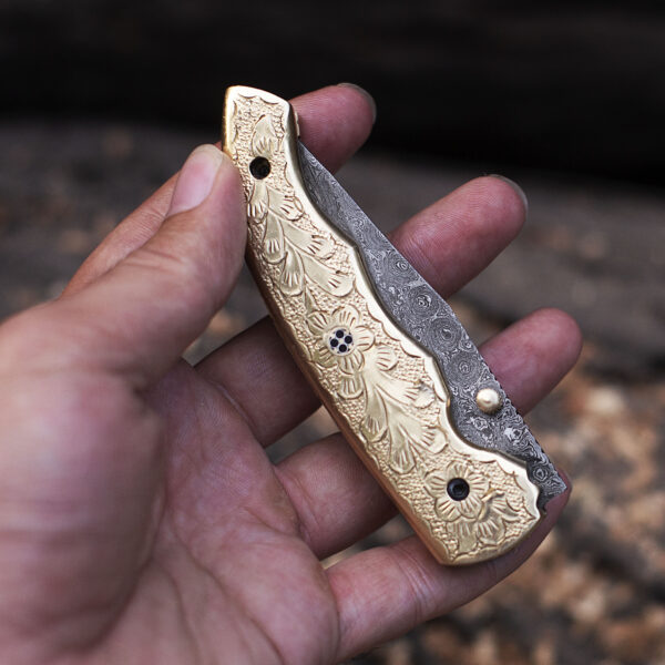 Material of or product: Damascus Steel, Brass Handle