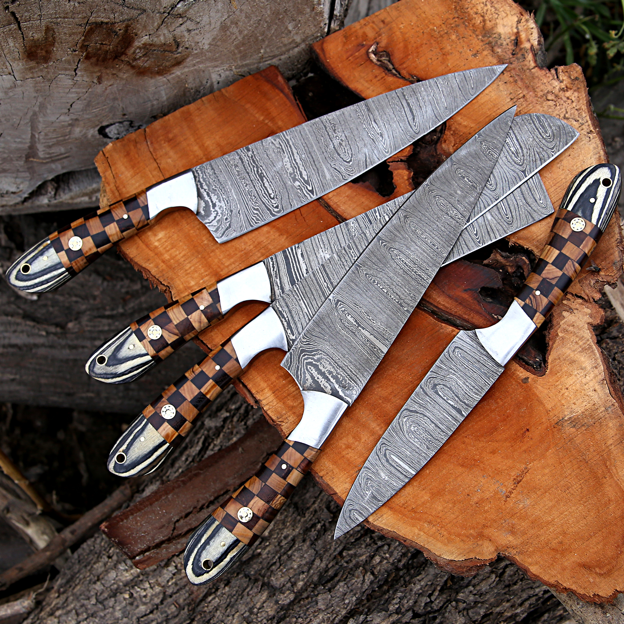 Damascus Steel 5 PCs Premium Kitchen Knife Personalized Chef Knife Set Forging Blades, Kitchen Knife Set, Chef Knife Set Father’s Day Gift Dad