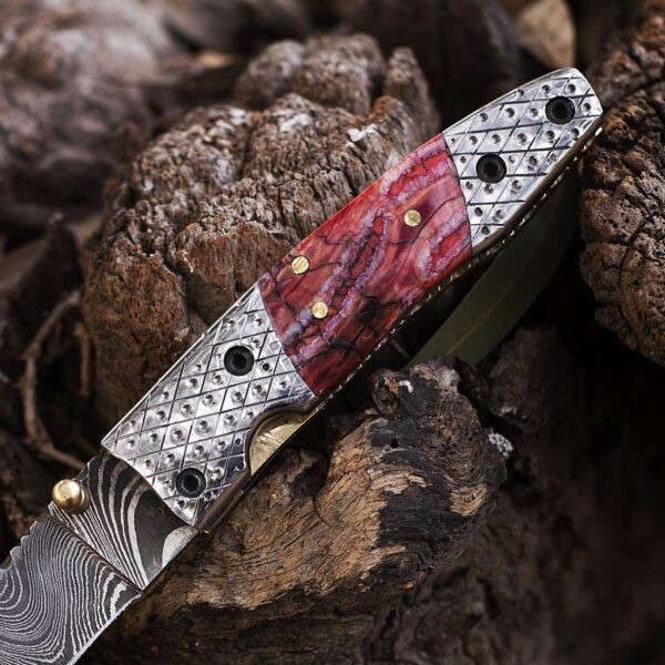 – Durable Quality: Premium quality Damascus pocket knife is tarnish proof and rust resistant to serve you for years to come. A trustworthy hunting knife that ensures excellent performance in a time of need, from survival to wood-cutting all can be done