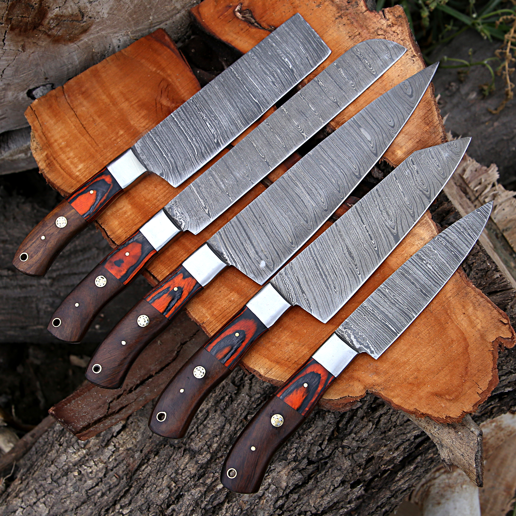 Professional Custom Hand Forged Handmade Premium Damascus Chef Knife set Of 5’Pcs, Kitchen Knife, Kitchen knives set, Damascus Knife Set
